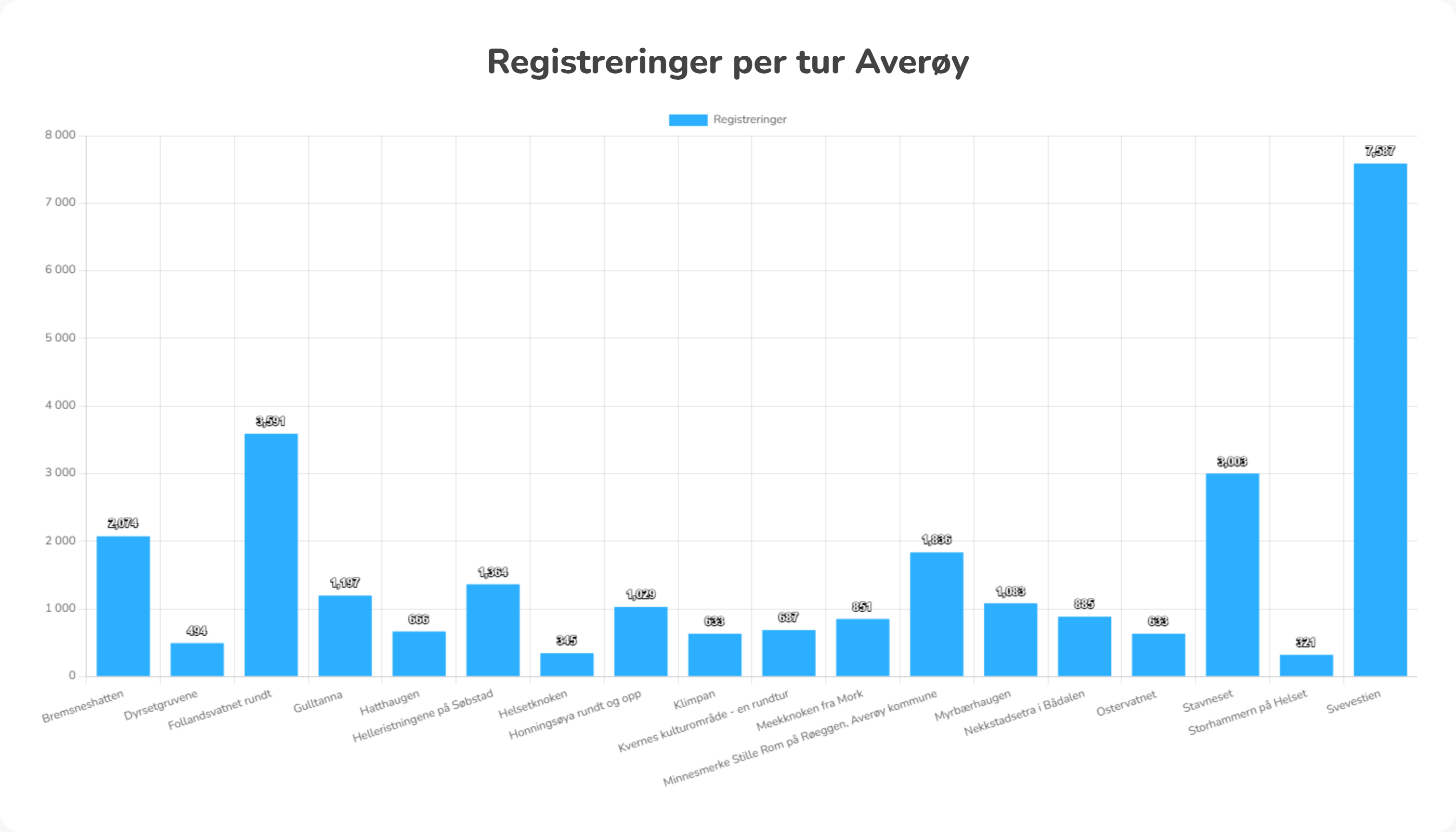 I Averøy er det 18 turer med variert gradering. Vi oppfordrer alle til å gå til flere av dem, om ikke til alle. Inviter gjerne noen med på tur. Det er alltid superhyggelig å bli invitert med.