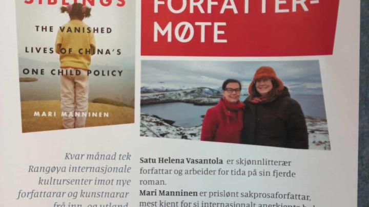 Finsk forfattarmøte Det vakre, det sanne og det saklege. Satu Helena Vasantola, Mari Manninen og Øyvind Rangøy. Møt dei i samtale i kommunestyresalen, 19. jan kl 18:00. Gratis inngang.