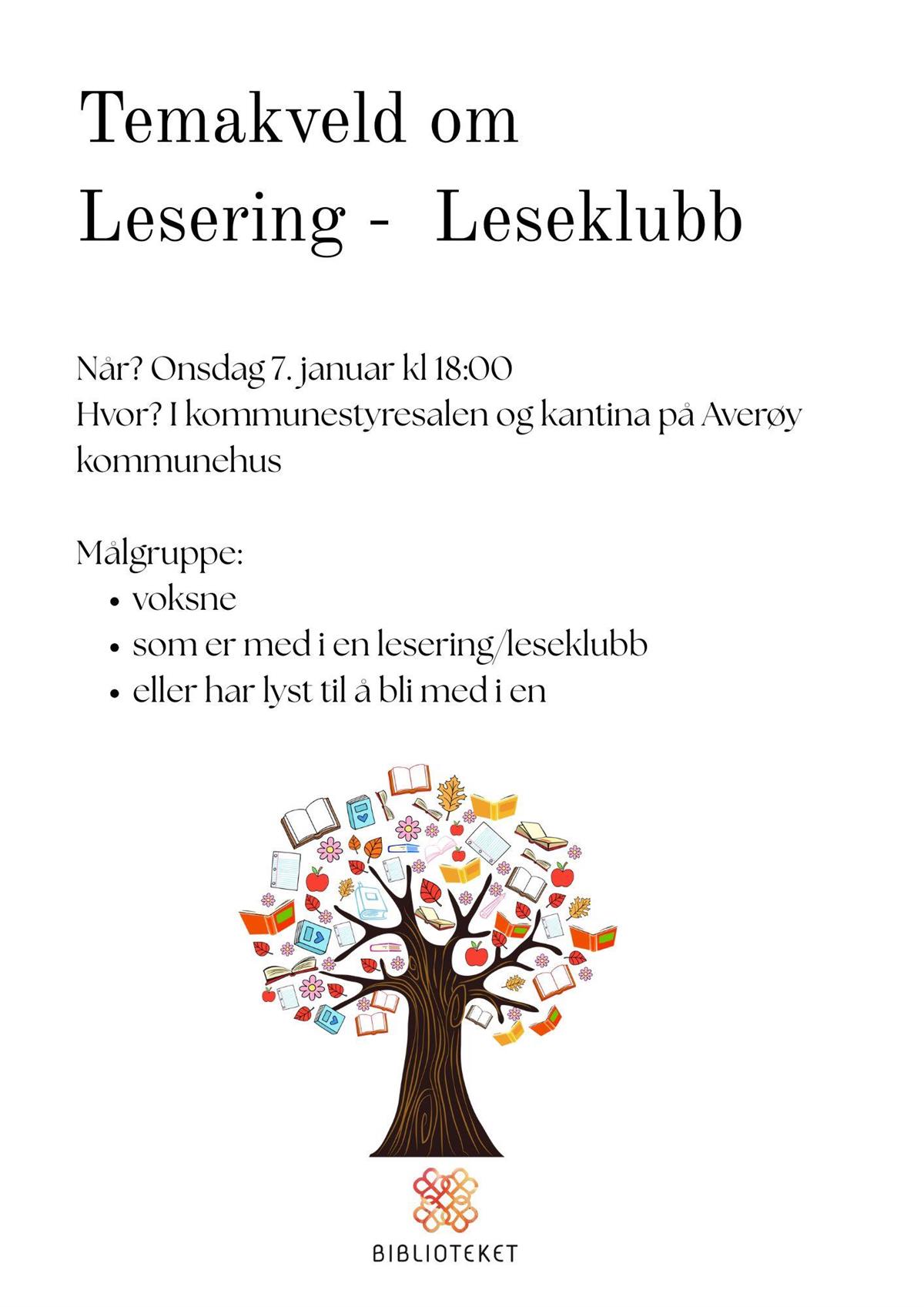 Temakveld om lesering. Onsdag 7. januar kl 18:00 på Averøy kommunehus. For voksne som er med i lesering, eller er interessert i å være med