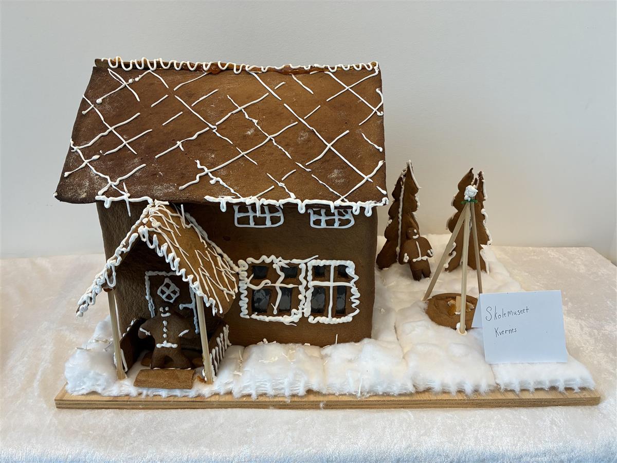 Vinner av bidragene i pepperkakebygda 2025 ble modellen av skolemuseet på Kvernes. Det er 5. og 6. trinn ved Bodalen friskole som har laget bygget. De kan hente bokpremie på biblioteket. Gratulerer!